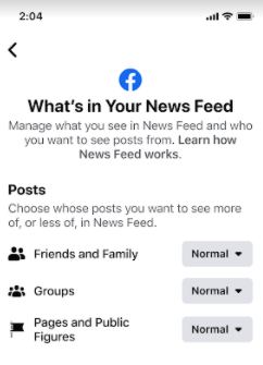 Users will be able to change the ratio of what's in their feed by changing these to More, Normal, or Less.