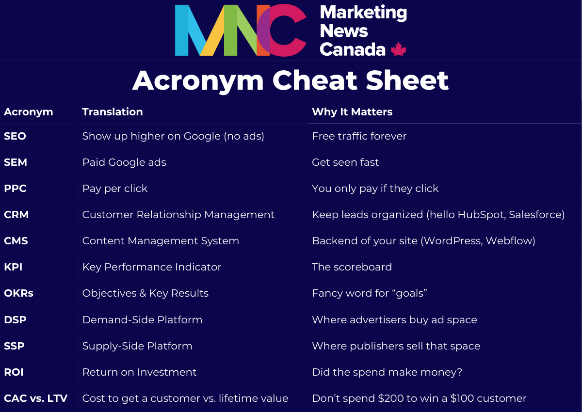 Whether you’re running a local Canadian coffee shop campaign or launching a nationwide retail blitz, understanding these terms means you can talk shop, read reports, and spot when someone’s hiding behind buzzwords instead of delivering results.