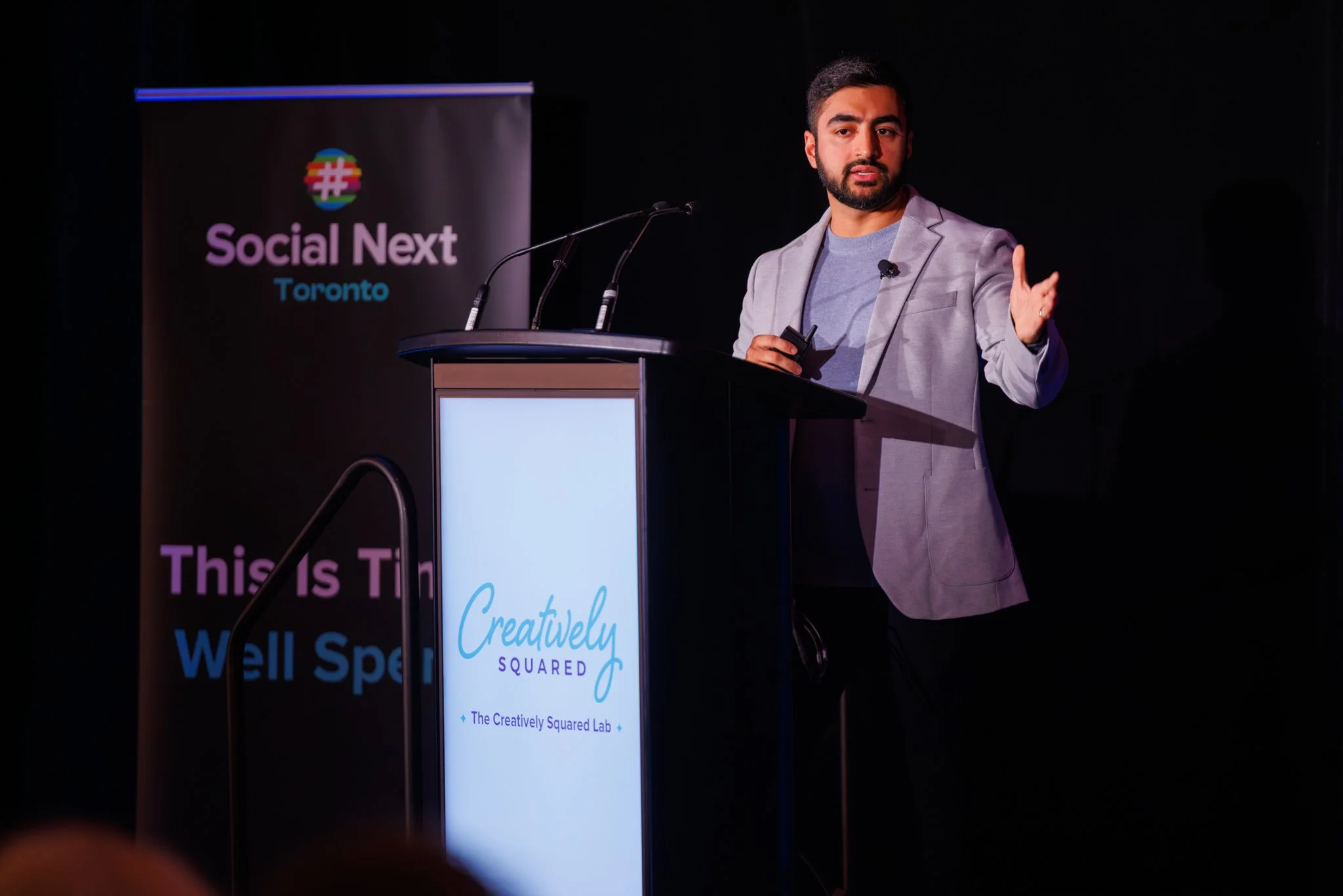 Qasim Mian, Creatively Squared on stage at SocialNext: Toronto 2026 - Photo by Neil Zeller
