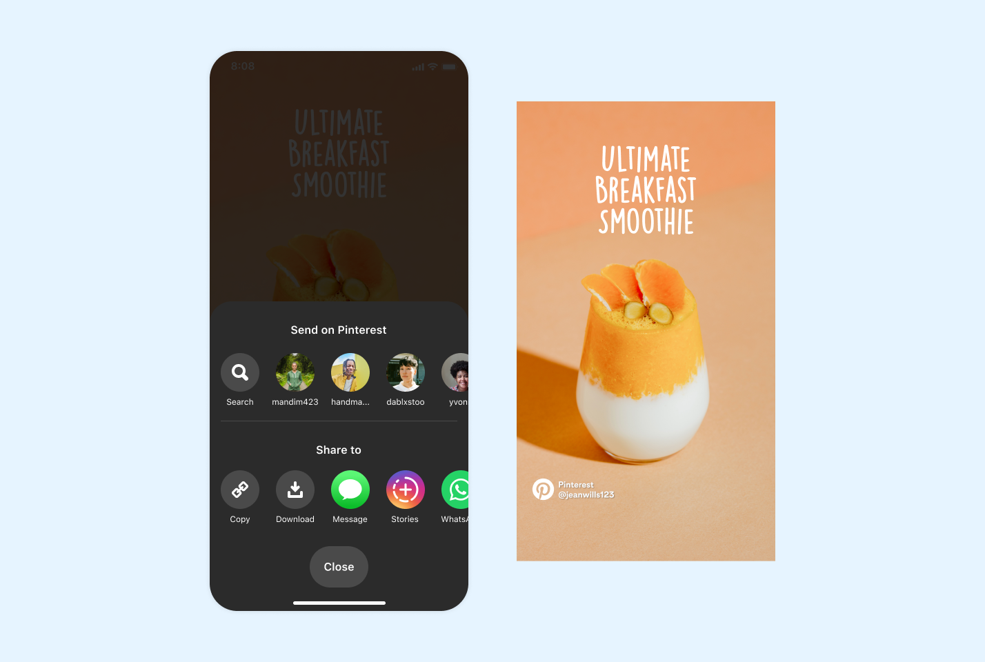 Pinners can still share content to other social platforms. The download option provides the ability to quickly save and upload watermarked Idea Pin content onto other platforms like Snapchat and TikTok.